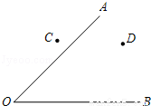 尺规作图。如图,已知∠AOB和C、D两点,求作一点P,使PC=PD,且P到∠AOB两边的距离相等.(不写画图过程,保留作图痕迹)
