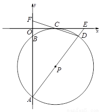 如图,在平面直角坐标系中,⊙P经过x轴上一点C,与y轴分别相交于A、B两点,连接AP并延长分别交⊙P、x轴于点D、点E,连接DC并延长交y轴于点F.若点F的坐标为