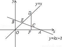 (2)在x轴有一点F(a,0).过点F作x轴的垂线,分别交函数y=kx+b和函数y=x于点C、D,若以点B、O、C、D为顶点的四边形是平行四边形,求a的值.