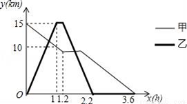 某森林公园从正门到侧门有一条公路供游客运动,甲徒步从正门出发匀速走向侧门,出发一段时间开始休息,休息了0.6小时后仍按原速继续行走.乙与甲同时出发,骑自行车从侧门匀速前往正门,到达正门后休息0.2小时,然后按原路原速匀速返回侧门.图中折线分别表示甲、乙到侧门的路程y(km)与甲出发时间x(h)之间的函数关系图象.根据图象信息解答下列问题.