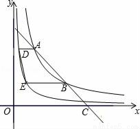(x>0)的图象交于两点D、E,连接DE,则四边形ABED的面积为( )