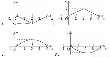 如图,正△ABC的边长为4,点P为BC边上的任意一点(不与点B、C重合),且∠APD=60°,PD交AB于点D.设BP=x,BD=y,则y关于x的函数图象大致是( )