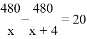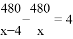 某农场开挖一条长480米的渠道,开工后每天比原计划多挖20米,结果提前4天完成任务,若设原计划每天挖x米,那么求x时所列方程正确的是( )