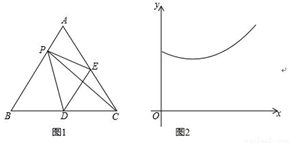 如图1,在等边△ABC中,点E、D分别是AC,BC边的中点,点P为AB边上的一个动点,连接PE,PD,PC,DE.设AP=x,图1中某条线段的长为y,若表示y与x的函数关系的图象大致如图2所示,则这条线段可能是图1中的( )