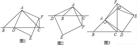如图3,当点D在线段BC的延长线上时,延长BA交CF于点G,连接GE.若已知AB=2