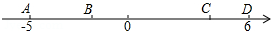 如图,数轴上有A,B,C,D四个整数点(即各点均表示整数),且2AB=BC=3CD.若A,D两点所表示的数分别是﹣5和6,则线段BD的中点所表示的数是( )