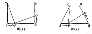 如图(1),AB=4cm,AC⊥AB,BD⊥AB,AC=BD=3cm.点P在线段AB上以1cm/s的速度由点A向点B运动,同时,点Q在线段BD上由点B向点D运动.它们运动的时间为t(s).