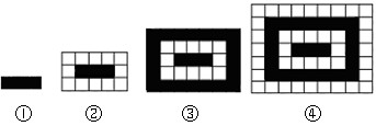 | 某市民广场地面铺设地砖,决定采用黑白2种地砖,按如下方案铺设,首先在广场中央铺3块黑色砖(如图①),然后在黑色砖的四周铺上白色砖(如图②),再在白色砖的四周铺上黑色砖(如图③,再在黑色砖的四周铺上白色砖(如图④)这样反复更换地砖的颜色,按照这种规律,直至铺满整个广场,观察下图,解决下列问题: | ||||||||||||