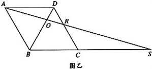 | 已知:在菱形ABCD中,O是对角线BD上的一动点. (1)如图甲,P为线段BC上一点,连接PO并延长交AD于点Q,当O是BD的中点时,求证:OP=OQ; (2)如图乙,连接AO并延长,与DC交于点R,与BC的延长线交于点S.若AD=4,∠DCB=60 °,BS=10,则AS= _________ ,OR= _________ . |