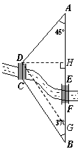 | 如图,有一段斜坡BC长为10米,坡角∠CBD=10°,为使残疾人的轮椅车通行更省力,现准备把坡角降为5°。 (1)求斜坡新起点A到原起点B的距离; (2)求坡高CD(结果保留3个有效数字). 参考数据: |