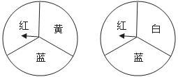 小明和小刚用如图所示的两个转盘做配紫色游戏,游戏规则是:分别旋转两个转盘,若其中一个转盘转出了红色,另一个转出了蓝色,则可以配成紫色.此时小刚得1分,否则小明得1分.这个游戏对双方公平吗?请说明理由.若你认为不公平,如何修改规则才能使游戏对双方公平?