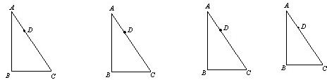 19、如图,Rt△ABC,D是斜边AC上的一动点(点D不与点A、C重合),过D点作直线截△ABC,使截得的三角形与△ABC相似,请你画出满足条件的所有直线.