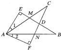 14、如图所示,∠E=∠F=90°,∠B=∠C,AE=AF.给出下列结论:①∠1=∠2;②BE=CF;③△ACN≌△ABM;④CD=DN.其中正确的结论是