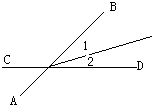 4、如图,直线AB,CD相交于点O,∠AOC=54°,∠1比∠2大10°,则∠1=