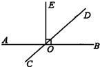 34、如图所示,直线AB、CD交于点O,OE⊥AB且∠DOE=40°,则∠COE=