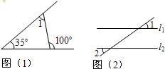 度;如图(2),已知直线l1∥l2,∠1=35°,那么∠2=