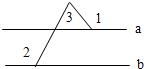 15、如图,已知a∥b,∠3=50°,则∠1+∠2=