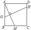 12、如图,正方形ABCD,M是BC上一点,连接AM,作AM的垂直平分线GH交AB于点G,交CD于点H,已知AM=10cm,求GH的长.