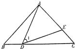 21、如图,在△ABC中,AB=AC,D、E分别在BC、AC边上,且∠1=∠B,AD=DE,求证:△ADB≌△DEC.