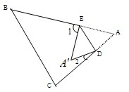 22、如图,△ABC中,∠A=40°,把△ABC纸片沿DE折叠,当点A落在四边形BCDE内部的A′处时,求∠1+∠2的度数,并说明理由.