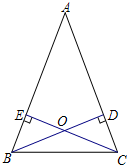22、如图,在△ABC中,AB=AC,高BD、CE相交于点O,试用所学习的知识说明OB=OC.
