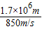 解答:解:它的飞行速度是V=2.5×340m/s=850m/s,