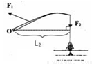 如图所示为钓鱼竿钓鱼时的示意图,O为支点,F1表示手对钓鱼竿的作用力,请在图中画出鱼线对钓鱼竿拉力F2的力臂L2 。 ![]()
