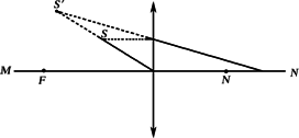 小刚有一发光的小电珠(可看作为点光源S)如下图,他需要的是向右射出的平行光.请帮他达到目的,画出得到平行光的光学器件,并画出光路图(二条光线)