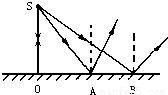 如图所示,S为一点光源,分别做出SO、SA、SB的反射光线.