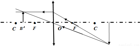 (4)如图A′B′为凸透镜所成的像,请利用光的折射规律,确定物体AB的位置与大小.(其中OC=2f)