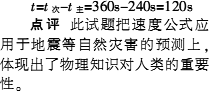 µØÕð²¨ÊÇÒ»ÖÖÓɵØÕðÕðÔ´·¢³ö£¬ÔÚµØÇòÄÚ²¿´«²¥µÄ²¨£®µØÕ𲨷ÖΪÖ÷²¨¡¢´Î²¨ºÍ±íÃæ²¨£¬×ÝÏòÕ𶯵ĵØÕ𲨳ÆÎªÖ÷²¨£¬ºáÏòÕ𶯵ĵØÕ𲨳ÆÎª´Î²¨£®Ö÷²¨±ÈÆäËûµØÕð²¨Ô˶¯µÃ¿ì£¬Æä´«²¥ËÙ¶ÈÊÇ6 km/s£¬¶ø´Î²¨µÄ´«²¥ËٶȽöΪ4 km/s£®5ÔÂ12ÈÕËÄ´¨ãë´¨´óµØÕð·¢Éúʱ£¬Ä³ÊÐÒ²ÓÐÕð¸Ð£®ÒÑÖªãë´¨µ½¸ÃÊеÄÖ±Ïß¾àÀëԼΪ1440 km£¬Ôò¸ÃµØÕ𲨵ÄÖ÷²¨±È´Î²¨Ôç________s´«µ½¸ÃÊУ®