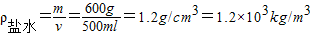 盐水选种是我国劳动人民很早就发明的一种选择饱满种子的方法.现要配制密度为1.1×103kg/m3的盐水,某农户配制了500 mL样品进行检测,测得这些盐水的质量为600 g.