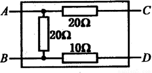 下图是从某电子仪器拆下来的密封盒子。已经知道盒内有三只电阻, A、B、C、 D为四根引线,现用多用电表测量,得知 AC间的电阻 RAC=20欧,CD间的电阻 RCD=50欧, AD间的电阻 RAD=30欧。若用导线把 BD连接后,测得AD间电阻RAD=20欧,请在方盒内画出电阻的连接图,并在图中标出每个电阻的阻值