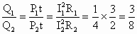 两段电阻丝的电阻之比为3∶2,通过的电流之比为1∶2,则在相同的时间内,它们产生的热量之比为