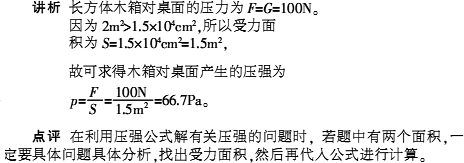 底面积为2 m2的长方体木箱放在水平桌面的中央,木箱重为100 N,水平桌面面积为1.5×104 cm2,则木箱对桌面产生的压强是