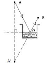 猴子捞月的故事同学们耳熟能详。如图所示,若月亮在A处,猴子在井边B处能看到井中的“月亮”在A/处,请确定井中“月亮”A/的位置,并画出猴子看到井中“月亮”的光路图。![]()