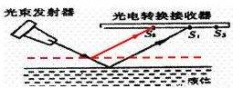 有一种液面微变监视器,由光束发射器发出的光反射到光电转换器接收平面上,若光点从S1点移向S2点,则表明被监视的液面是