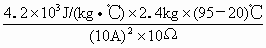 在温度是20℃的2400g的水里有一根阻值是10Ω的电阻丝,若通过这根电阻丝的电流是10A,需要多少时间才能把水加热到95℃?(假设电阻丝放出的热量全部被水吸收)