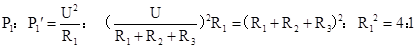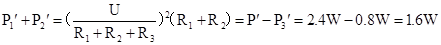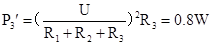 如图所示电路,电源电压一定,R1>R2。当只断开开关S3时,电路消耗的电功率为19.2W,电阻R1消耗的电功率为P1;当只闭合开关S3时,电路消耗的电功率为2.4W,电阻R3消耗的电功率为0.8W,电阻R1消耗的电功率为P1¢;则P1∶P1′=______________。![]()