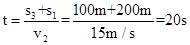 喜羊羊发现后方100m处的灰太郎正以15m/s的速度向自己猛追过来,此时喜羊羊与前方的羊村相距200m。问:喜羊羊至少要用多大的速度才能安全跑进羊村?