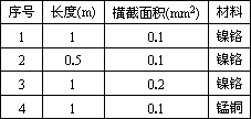 某同学为研究导体电阻大小与长度、材料、横截面积是否有关,他保持电路两端电压不变,把下表中合金线分别接入该电路中测出通过合金线的电流大小进行对比研究,则