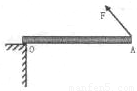 如图所示,可绕O点转动的质量均匀的金属杆OA,在力F的作用下静止水平位置,请画出金属杆重力G的示意图和力F的力臂.
