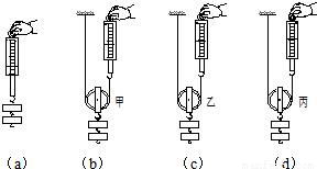 丙)缓慢提起相同钩码,如图(b)、(c)、(d)所示.请仔细观察图中的操作和弹簧测力计的示数,然后归纳得出结论.