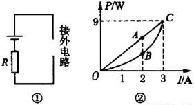 如图①所示,一个电压恒定的电源跟一个电阻R串联后,给电路供电,如图②中直线OAC为该电源的输出功率P