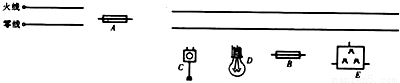 如图所示,A、B为保险盒,C为开关,D为螺丝口灯泡,E为接大功率用电器的三孔插座.请把这些元件接入家庭电路中.
