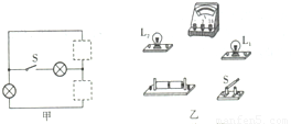 (1)请在图甲的两个虚线框内,选填“电源”和“开关”的符号,并满足当开关都闭合时两灯组成并联电路.