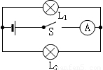 某同学利用图示电路研究并联电路电流的规律.闭合开关S再迅速断开,发现接通电路的短时间内,两只小灯泡均发光,电流表的指针正向偏转超过最大刻度.产生这种现象的原因可能是( )