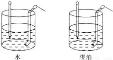 如图所示,用两个完全相同的电加热器给水和煤油分别加热,在此过程中,水和煤油的温度升高一样快,由此可以判定( )