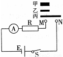 某同学利用如图电路,探究“导体电阻的大小与其横截面积的关系”,图中甲、乙、丙是镍铬合金丝,甲、乙长度相同,乙、丙粗细相同.实验中,根据______判断接入M、N两点间电阻的大小,选用的电阻丝是______.