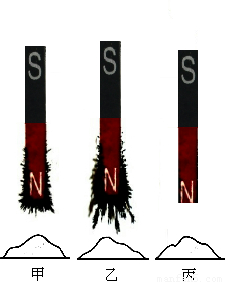 有三种干燥的物质,用三根完全相同的磁铁分别插入其中,提起后情形如图所示,可能是大米的是( )